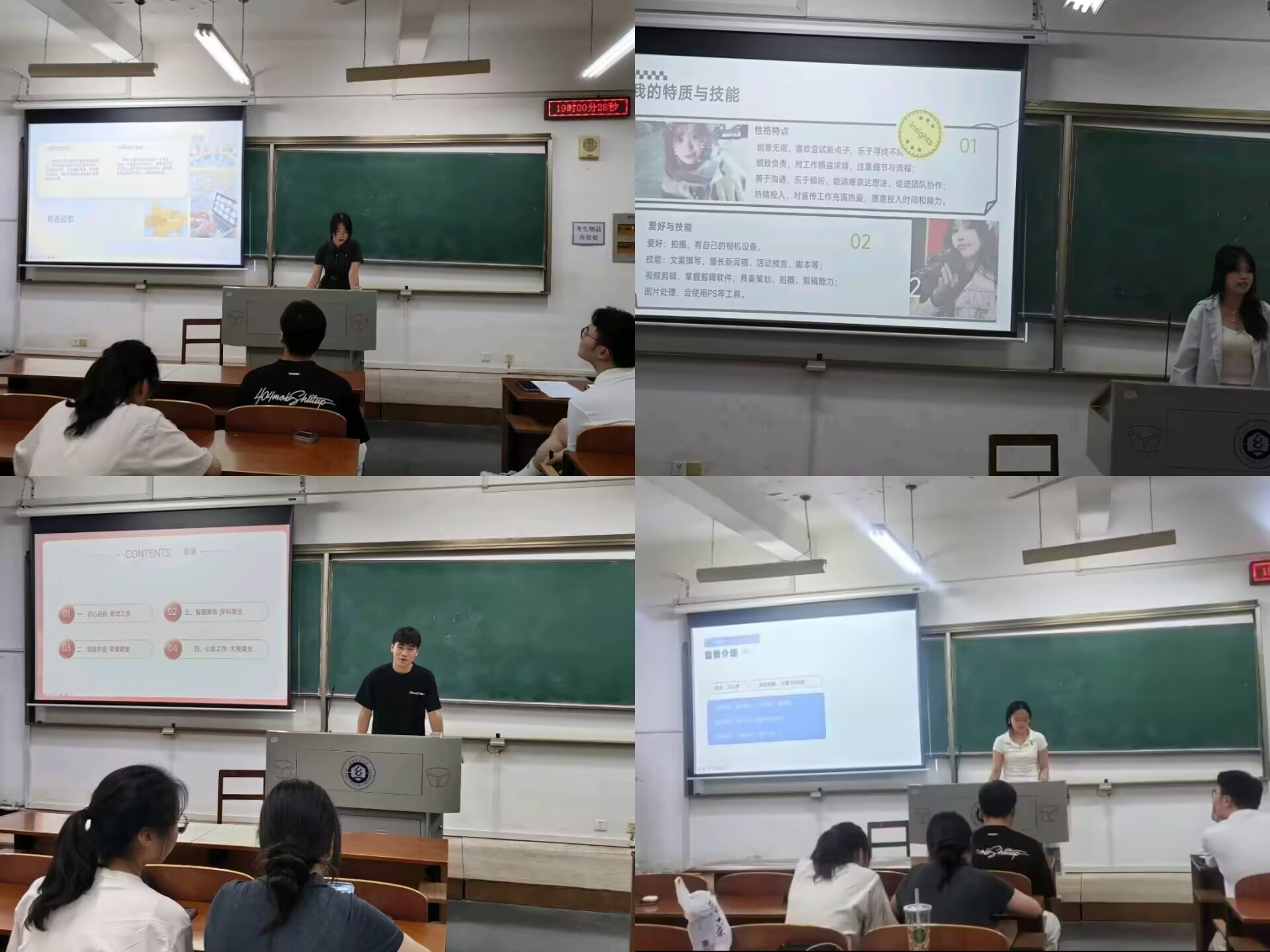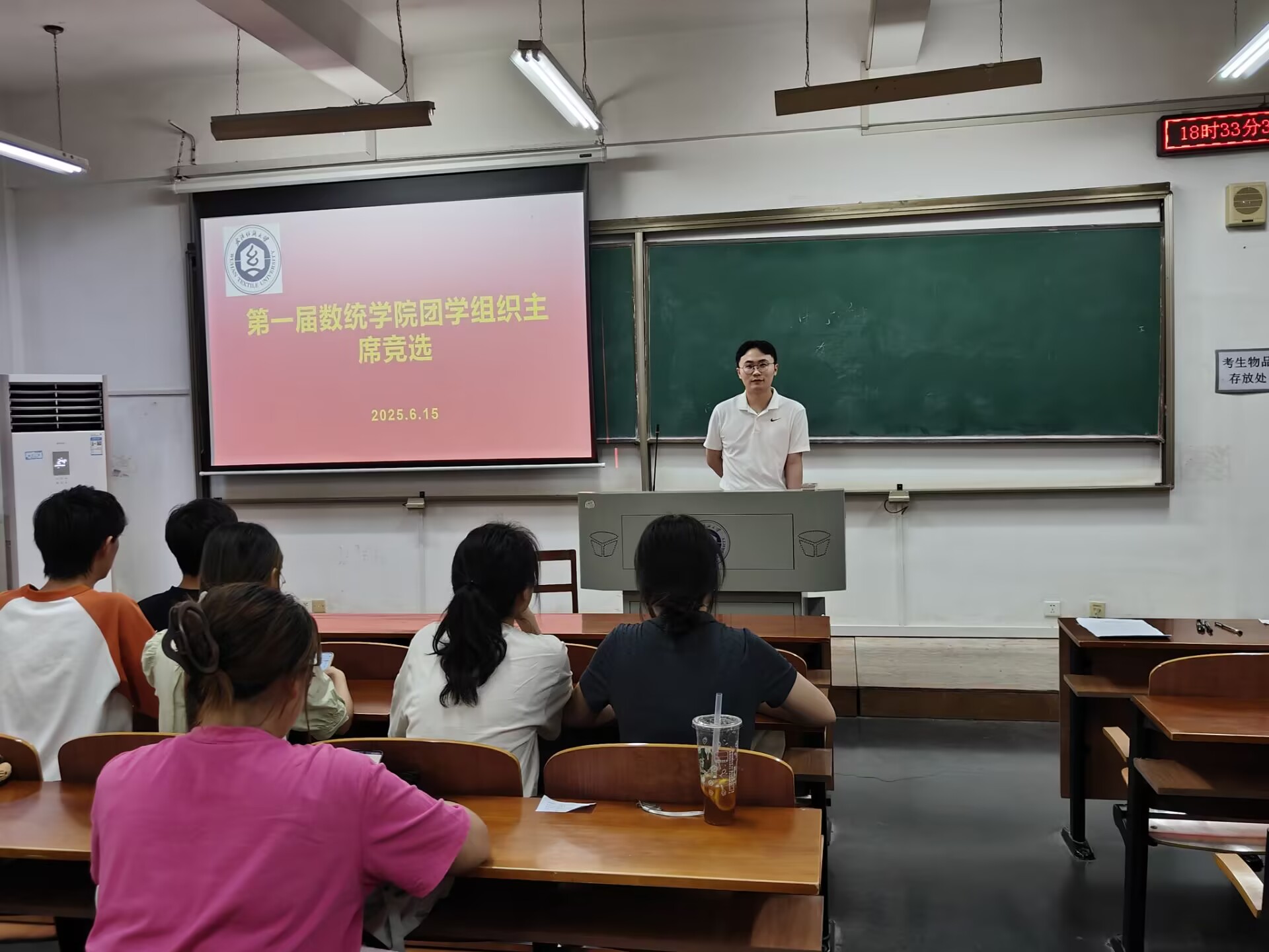 竞选时,曾琦老师向我们大致讲解了主席的一些职责,随后便开始了各个学生答辩展示,在每位竞选的学生讲明了自己的竞争优势后,曾老师以及主席团的成员则会对他们针对性的提问。其中,应数12302班刘欣荷竞选学习部主席;应数12301班竞选宣传部主席;应数12302班章松竞选组织部、创新创业实践部主席;应数12302班黄丹丹竞选劳育、志协主席;信科12302班张雅琼竞选文体活动部主席;应数12301班夏韵竞选宣传部主席;应数12301班张子豪竞选体育部主席;应数12302班卫云倩竞选秘书部主席。