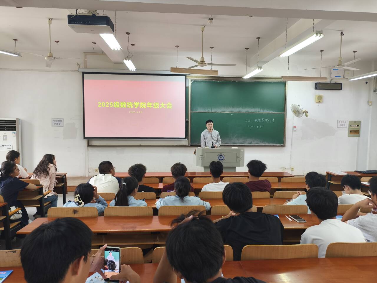 在崇志楼119召开 2025 级年级大会。本次大会由辅导员曾琦主持,围绕新生关心的大学生医保、国庆放假安排、宿舍安全管理及防诈骗教育四大议题展开,为新生们送上了一堂实用且全面的 “校园生活指导课”。