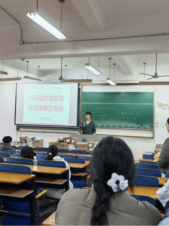 2025级于03-116室召开新学期年级大会。辅导员曾琦主持会议,全体2025级学生参会,围绕开学注意事项、安全保障、学业提升等核心内容展开交流,为新学期筑牢思想根基、夯实学习基础。