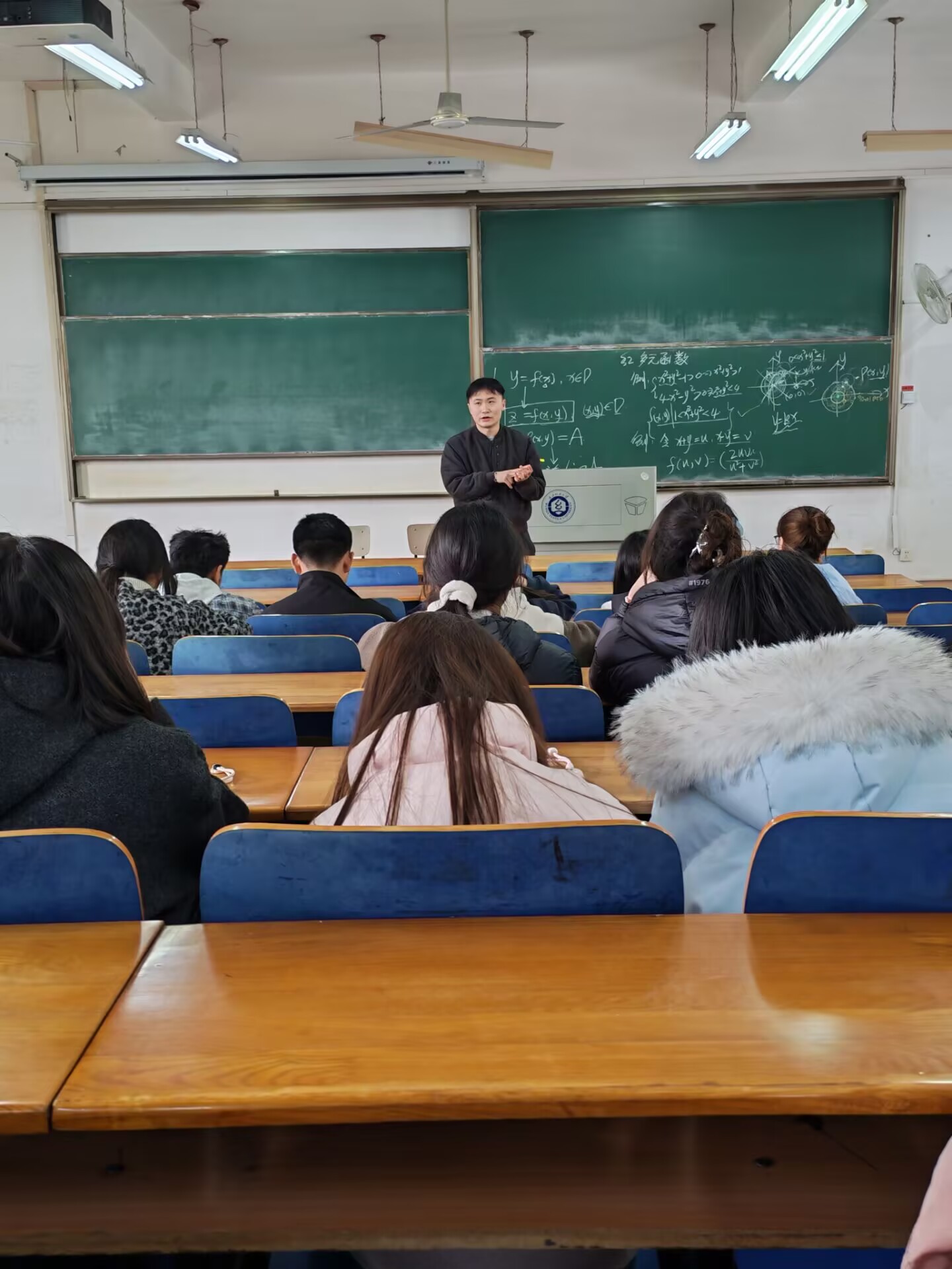 紧接着,另一位主讲老师数学与应用数学专业专业负责人江健展开讲解。他强调,数学与应用数学作为数学类的核心专业,侧重培养学生的数学思维与应用能力,为各领域提供基础理论支撑与解决实际问题的数学方法。江老师重点阐释了抽象代数、复变函数、数学建模等核心课程的学习重点,结合人工智能、经济金融、环境保护等领域的实际案例,展现了专业的广泛应用性。同时,他还分享了专业的科研方向、学科竞赛资源以及毕业生在教育、科研、企业管理等领域的发展案例,鼓励学生结合自身兴趣深耕专业,夯实基础、提升综合能力。
