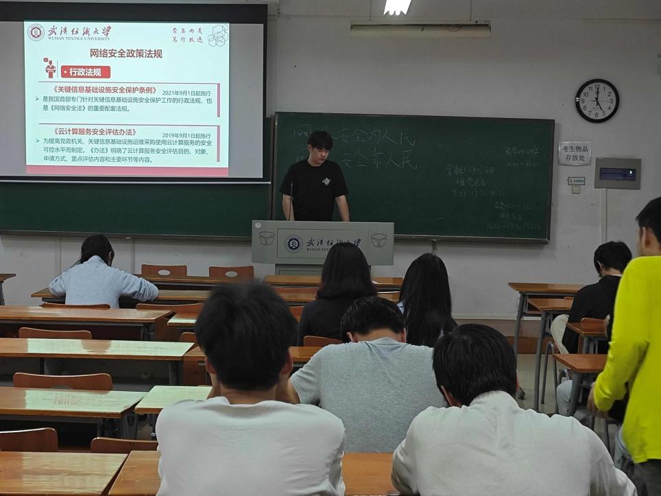 后,班会围绕网络安全法规展开讲解,重点介绍了我国已形成的网络安全法律法规体系,包括《网络安全法》《数据安全法》《个人信息保护法》等,以及关键信息基础设施安全保护的相关制度和国家标准,帮助同学们了解国家在网络安全领域的顶层设计和制度保障。