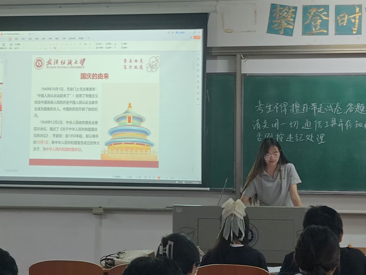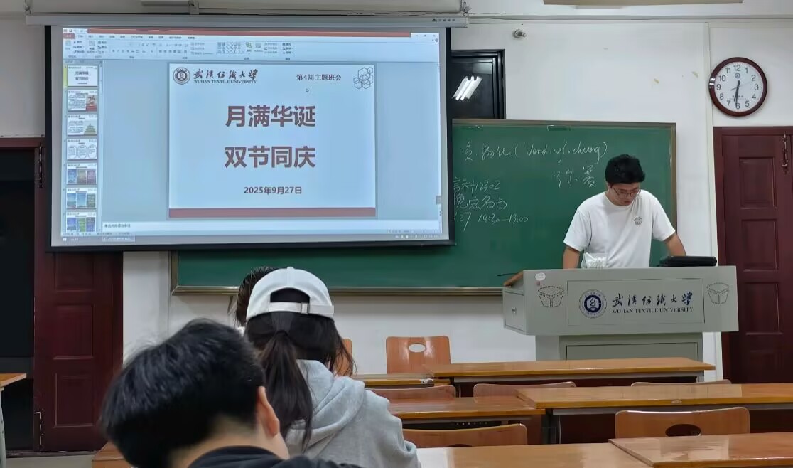 班会伊始,团支书介绍了国庆节与中秋节的由来,不仅以故事的形式介绍节日,还分享了这两个节日的重要意义。双节同庆固然令人欣喜,但还要注意自身的安全问题。在欢庆之余,同学们要注意出行安全、旅游安全、居家安全、宿舍安全和网络安全。最后,团支书介绍了第一届“纺创杯”师生创新创业系列赛事,鼓励同学们大胆创新、把握实践机会,为个人成长积累经验。