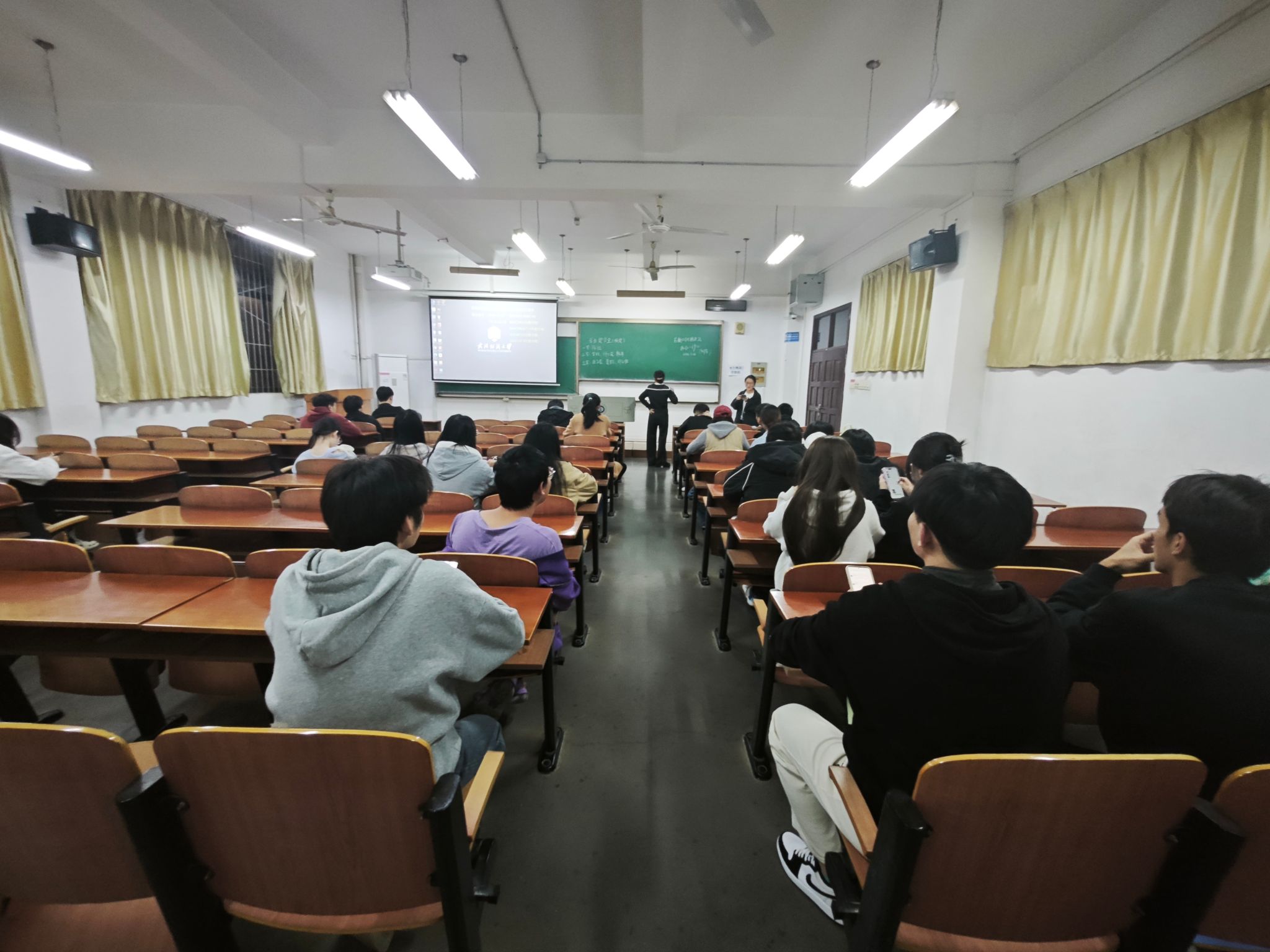 在互动交流环节,同学们积极提问,就“零基础如何入门竞赛”“备赛资料如何获取”“竞赛获奖对升学就业的帮助”等问题深入探讨。现场氛围热烈,不少同学主动交换联系方式,计划后续共同学习、协同备赛。此外,班会还介绍了学院为竞赛提供的指导教师资源、实验室场地支持、备赛培训课程等保障措施,鼓励同学们结合自身专业特长与兴趣,积极参与各类竞赛,以赛促学、以赛促练。