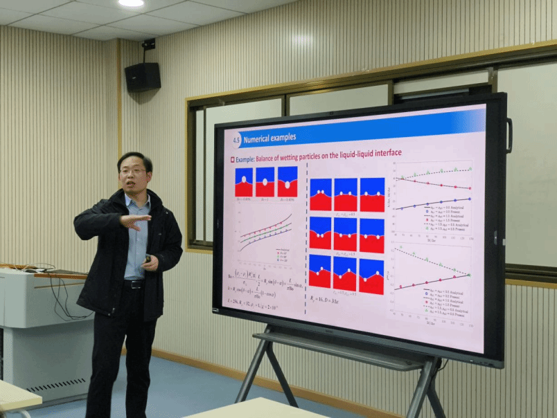 论坛上,柴振华教授首先作了题为《Diffuse-interface modeling and simulation of multiphase and reactive flows》的学术报告。柴教授从多相流与反应流的建模基础出发,系统介绍了扩散界面方法在复杂流动系统中的应用,并结合其团队在格子Boltzmann方法、多尺度建模等方面的研究成果,展示了数值模拟在理解与预测流动行为中的重要作用。