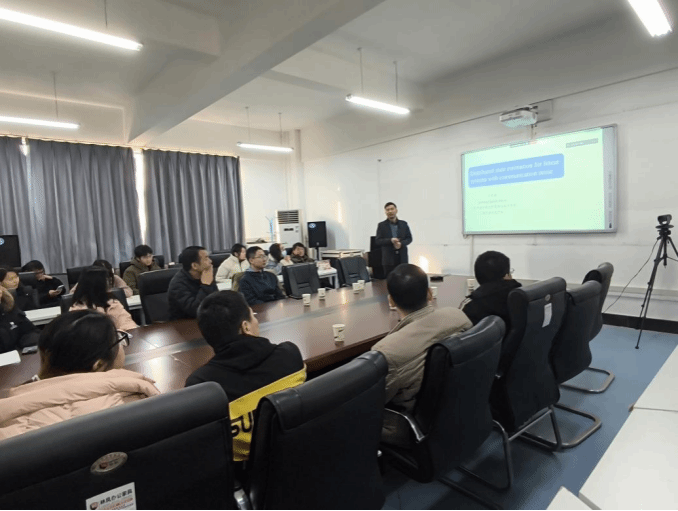 紧接着,王军威教授作了题为《随机环境下的分布式状态估计》的学术报告。 首先介绍了分布式状态估计可有效整合空间布局的多个传感器数据,有效抑制噪声和不确定性,从而提供更准确、可靠的系统状态推断,已在科学、工程和金融等多个重要领域受到广泛关注。其次,结合分布式状态估计的新进展,探究了随机环境下分布式观测器的设计方法,旨在实现对观测目标状态的全局估计。